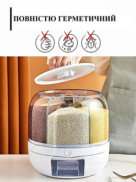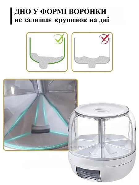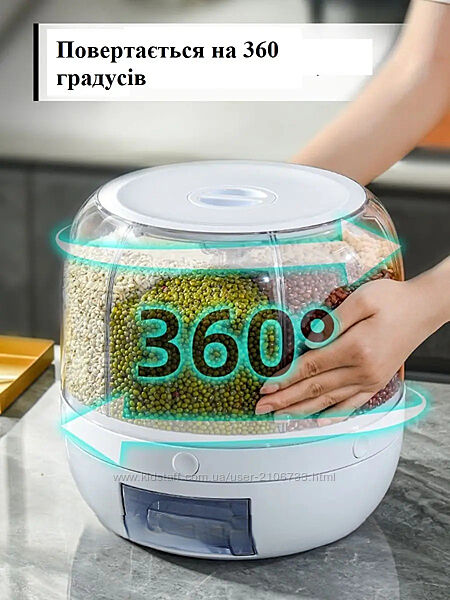 ВРАЩАЕТСЯ НА 360. Контейнер для круп легко и без труда вращается на 360 градусов, что поможет вам в удобстве пользования крупами.