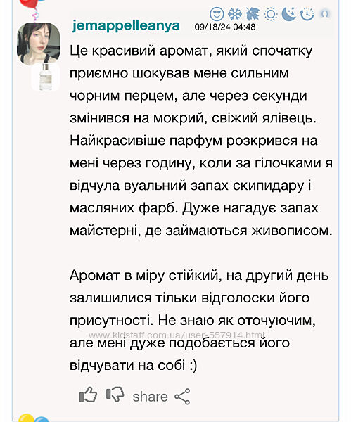 На початку яскравий і справжній аромат свіже змеленого чорного перцю, а далі це аромат нового паперу з свіжими друкарськими фарбами.