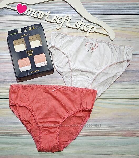 Коралово-білі труси для дівчинки від OVS у розмірі 14-15 років (с19).У наборі п´ять пар.