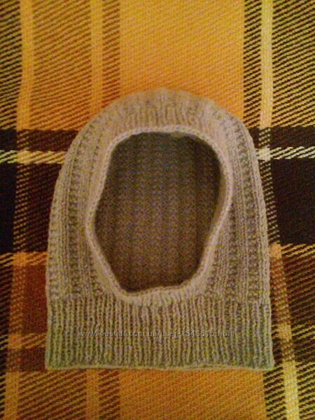 Капор, балаклава.Цвет-серый. Ручная работа , связан спицами. Состав-100% шерсть.На ощупь мягкий,не колется. Плотный, легкий .Вес 100-110 г.