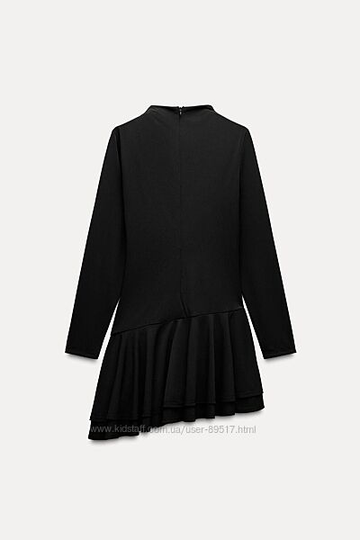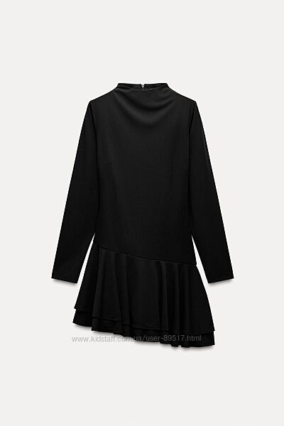 Сукня з піднятим коміром і довгими рукавами. Має асиметричне оздоблення з воланами внизу, підкладку у стилі шортів та приховану блискавку ззаду.Розмір S, маломірить - реально іде на XS