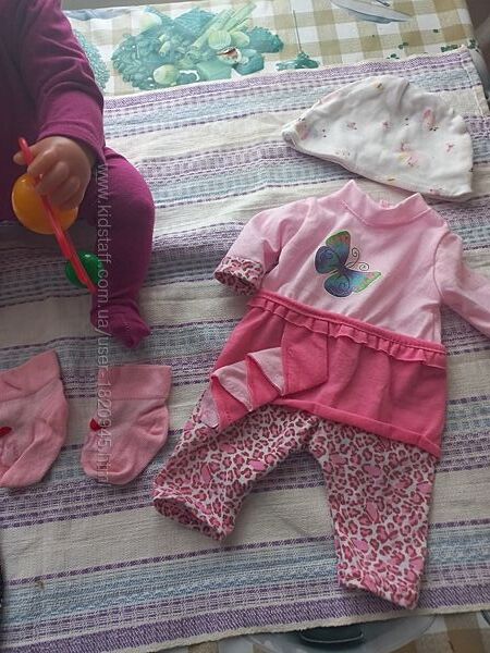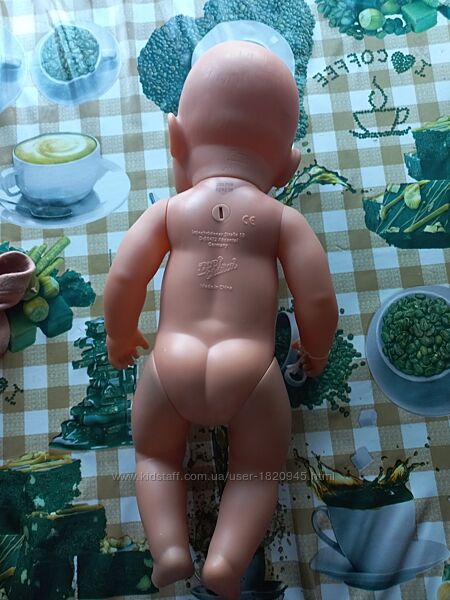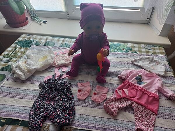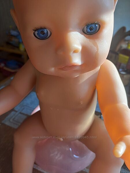 Куколка Беби борн ростом 43 см. от фирмы Zapf creation. Оригинал. Кукла имеет активный пупок, глаза синхронные. Плачет правда только левым глазикам ( но может и правым будет не знаю точно ) и писяет если напоить водичкой. Состояние куклы очень хорошее, есть потёртости на теле куклы и черноватые пятна внутри ( на фото показала), в глаза не бросается, а под одеждой не видно. В набор входит всё что на фото. Одежда в хорошем состоянии. Новый памперс, есть аксессуары, только нет пустышки.. Всё в цене учтено. Цена без торга. Смотрите другие мои объявления. Спрашивайте.Другие объявления продавца