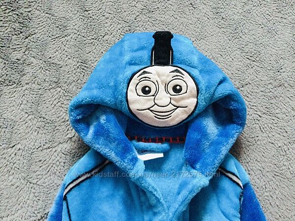 Disney 2-3 рок., флісовий, махровий, пухнастий халат з Паровозиком Томас та капюшоном. теплий, банний, на море або в басейн. Стан: нового, слідів носки НЕМАЄ, зав´язується на талії пояском. є Кишені. довжина 53; рукав від вороту 42з Паровозиком Томас довжина 53; рукав від вороту 42