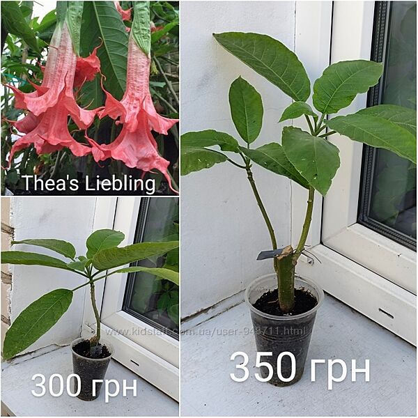 Бругмансия Thea´s Liebling - это самая насыщенная из розовых сортов, которая по мере цветения набирает цвет доходя до красного. Цветок необычайно длинный с изящно закрученными усами. Запах неповторимый, усиливающийся к вечеру. Цветок днём не закрывается, в отличие от не махровых сортов.Для продажи есть черенки укоренённые весной и осенью прошлого года. На 2 фото пример продаваемых растений.