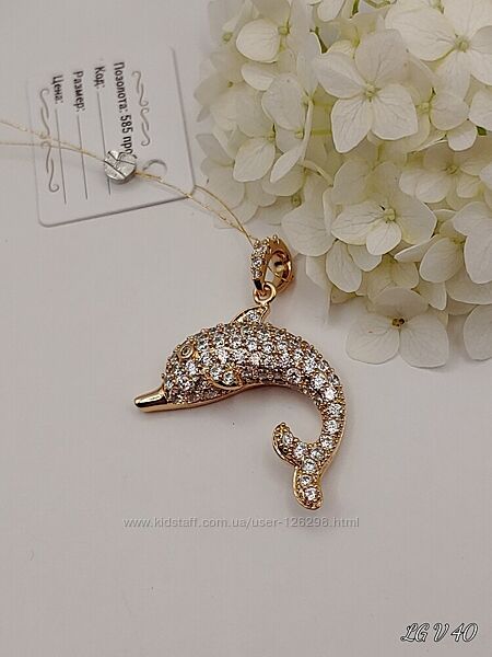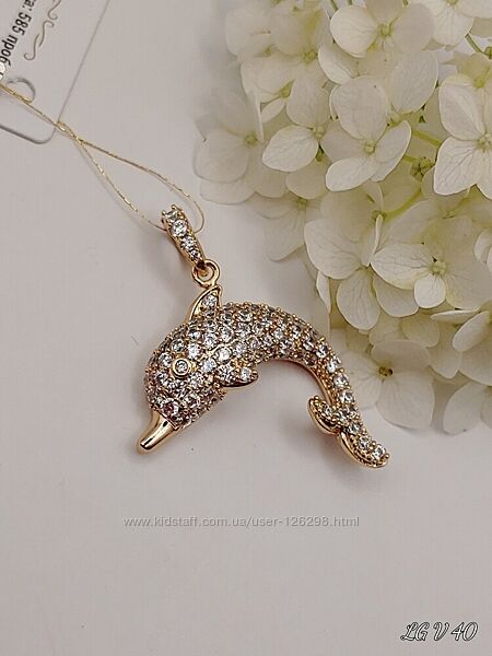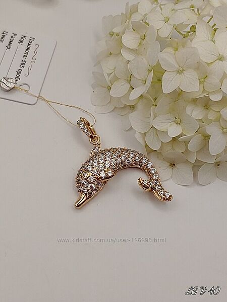супер яркий и эффектный кулон с фианитами, позолота 585 пробы