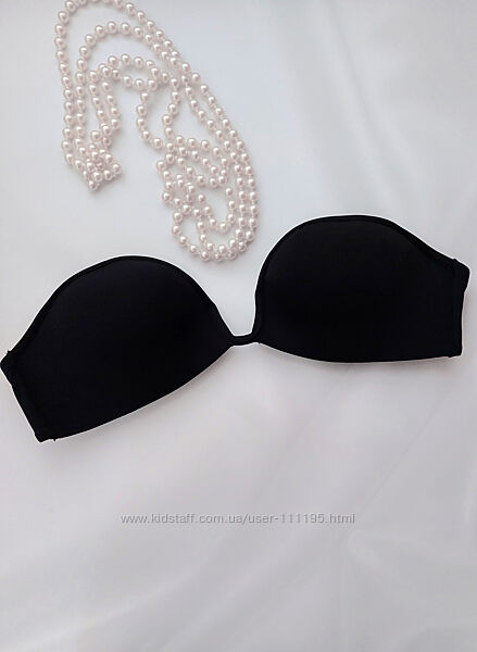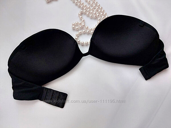 Подробное описание: 75B Черный бюстгальтер-балконет пуш ап без бретелей без косточек глубокое д