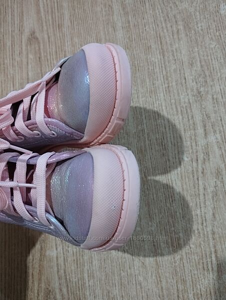 Нарядные ботинки Primark перламутровые, мягкий гладкий верх (не намокает), внутри текстильная подкладка, усиленный резиновый носок, резиновая подошва.Размер указан евро 29, длина стельки 18,5 см, ширина приблизительно 6,5-7 см.
