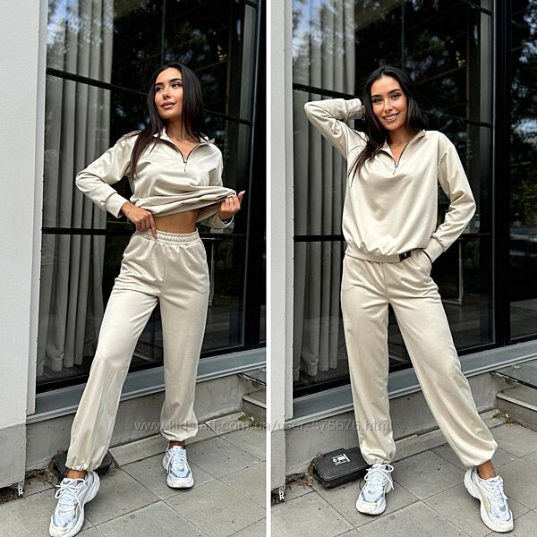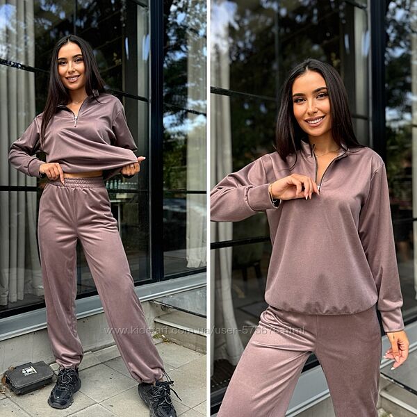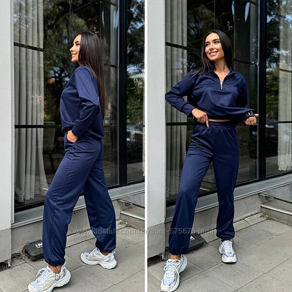 Гарний та якісний костюм, не скатується. По коміру кофти йде декоративна змійка. Штани прямі, знизу є резинка та фіксатор.