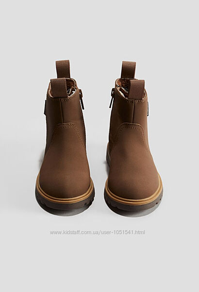 Черевики H&M з водонепроникною мембраною, яка зберігає ноги сухими. Модель має бічну блискавку, м’яку велюрову підкладку і спінену устілку Cellfit™ для додаткового комфорту та профільовану підошву для гарного зчеплення. Підошва 2,4см.РОЗМІР 31( 20.2 см ) і 32 ( 20.8 см )