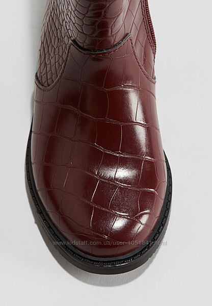 Черевики бордо H&M з круглим носком . Модель має бічну блискавку, м’яку велюрову підкладку і спінену устілку Cellfit™ для додаткового комфорту та профільовану підошву для гарного зчеплення. Підошва 2 см.РОЗМІР 31( 20.2 см ) і 32 ( 20.8 см )СКЛАД