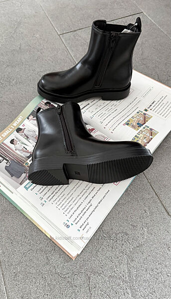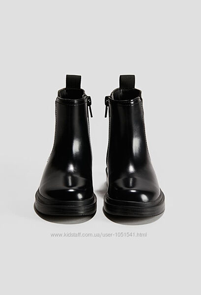 Черевики чорні з екошкіри H&M.Гумка з одного боку і застібка з іншого боку. Модель має м’яку велюрову підкладку, устілку з піни Cellfit™ для додаткового комфорту та профільовану підошву для гарного зчеплення.РОЗМІР 30 ( 19.5 см ) 31( 20.2 см ) і 32 ( 20.8 см ) 33(21.4 см )