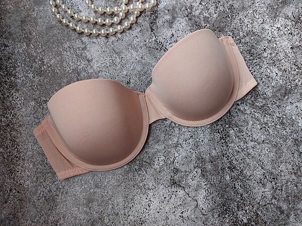 75C Гладкий контурный бежевый бюстгальтер балконет без бретелей H&M