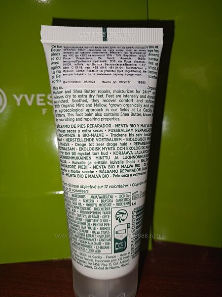 Відновлювальний бальзам для ніг, збагачений органічною М’ятою, органічною Мальвою та олією Каріте Біо, - інтенсивний догляд для дуже сухої шкіри ніг. Миттєво зволожує та забезпечує відчуття комфорту протягом 24 годин*.