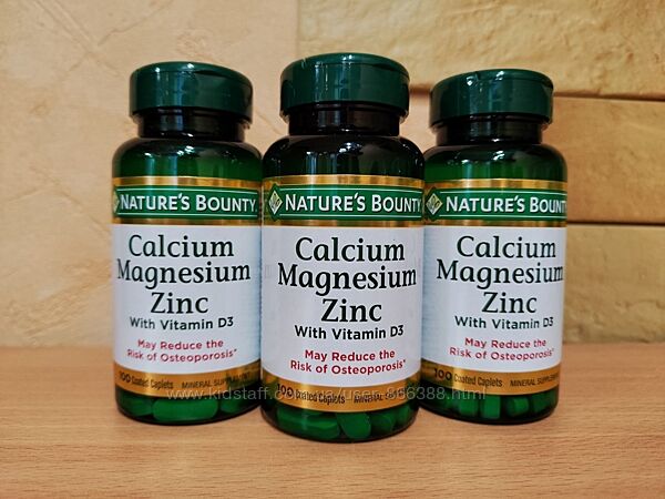 Nature´s Bounty, кальцій, магній та цинк, з вітаміном D3, 100 капсул в оболонці*Може зменшити ризик виникнення остеопорозу