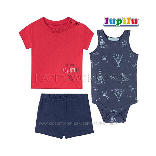 Размер на бирке: 12-24 мес (86-92 см).Летний детский комплект от немецкого бренда Lupilu® изготовлен из качественного трикотажа, выдерживающего многократные стирки. Ткань не теряет яркость красок и и сохраняет форму в процессе эксплуатации.