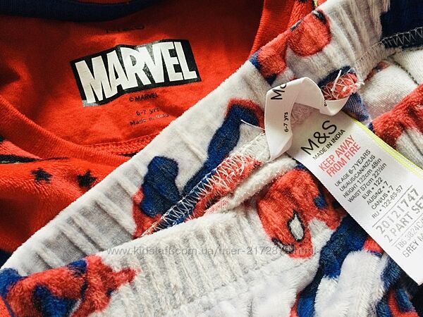 6-7 років, 122 зріст Marks&Spencer велюрова піжама з Людиною Павуком, м"якенька, піжама на манжетахСтан нової , слідів носки немає