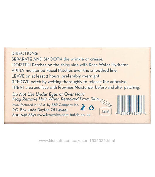 Подробное описание: Frownies патчі для обличчя, від зморшок