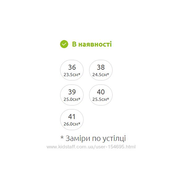 | Размер | 36, 37, 38, 39, 40, 41 |