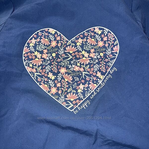 Вітрівка на котоновому підкладі. На кармані - вишивка, на спині - принтоване сердечко.Розмір: 110 см.