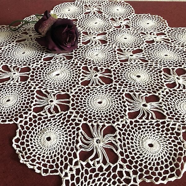 Небольшая ажурная скатерть ручной работы связанная крючком Для декора небольшого столика или может быть использована в качестве наперона для более темной скатерти Для ценителей ручной работы или в подарок близкому человекуДругие объявления продавца