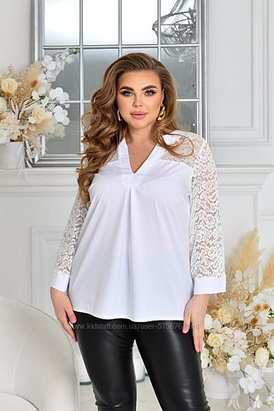 р.52 до 66р. Блуза софт, гіпюр