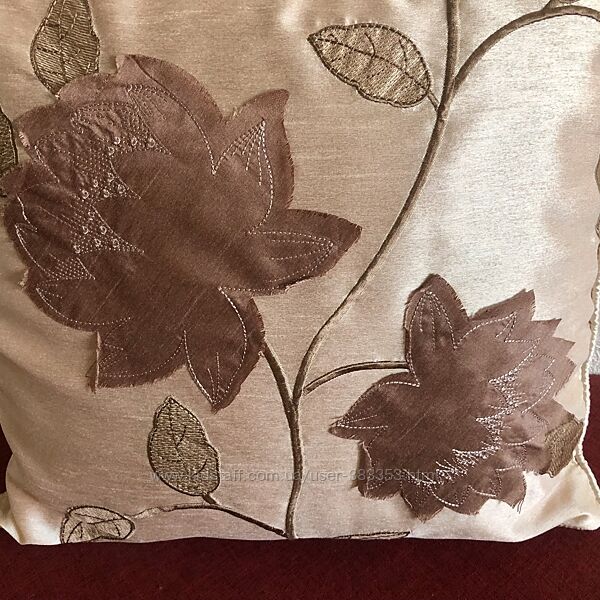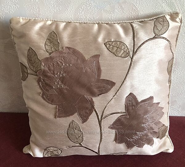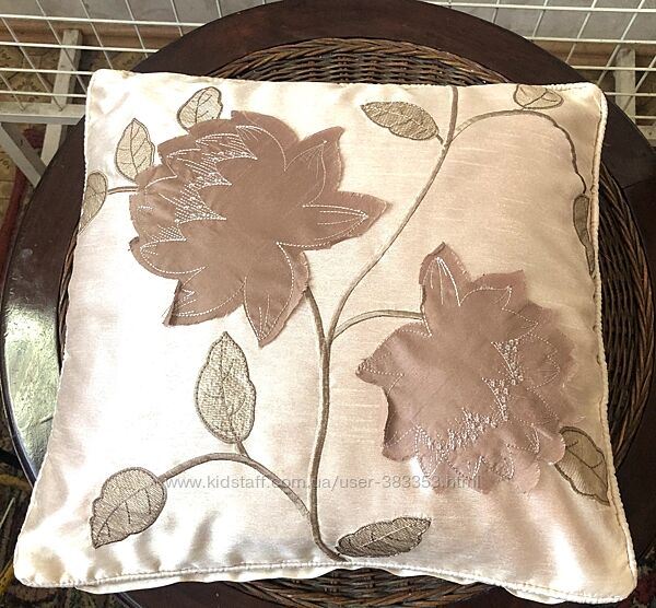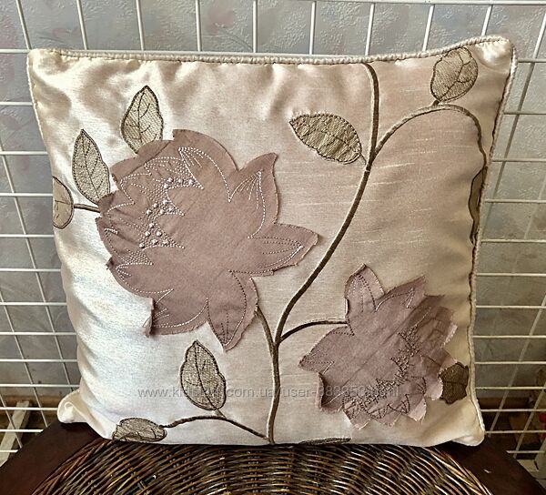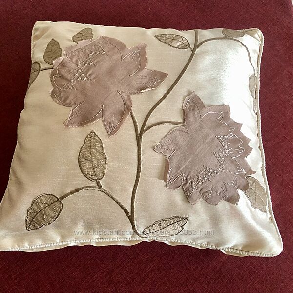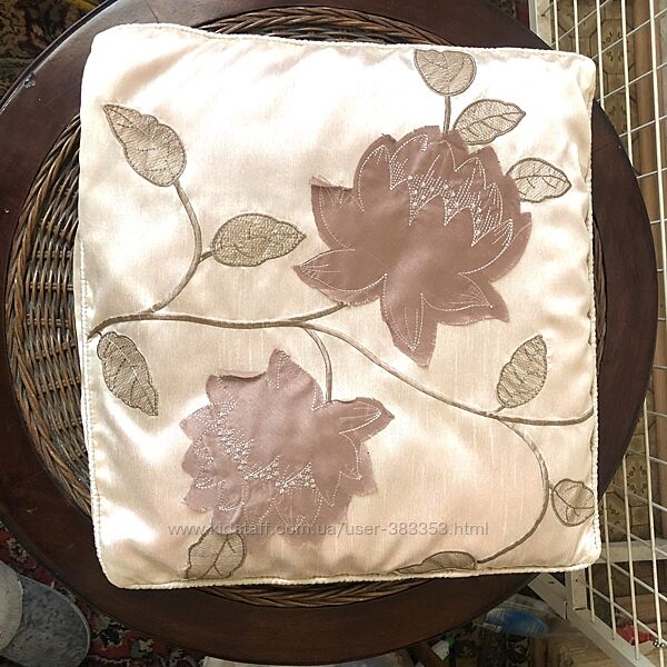 Шелковая пудровая наволочка с аппликацией. 42х43 см