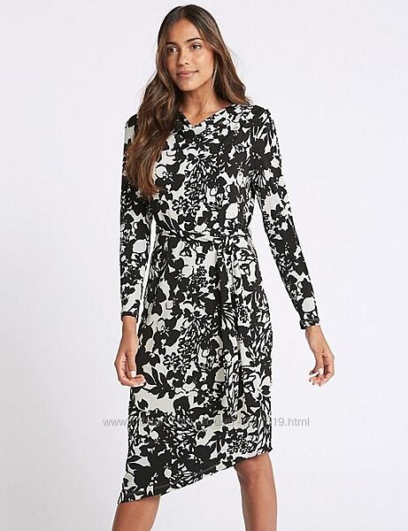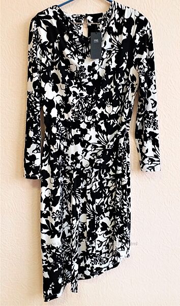 Сукня від англійського бренду Marks & Spencer. Асиметричний крій. По спинці застібається на гудзик. Є підкладка. На плечах та горловині драпірування. Тканина середньої щільності, м´яка, тягнеться.(3092)