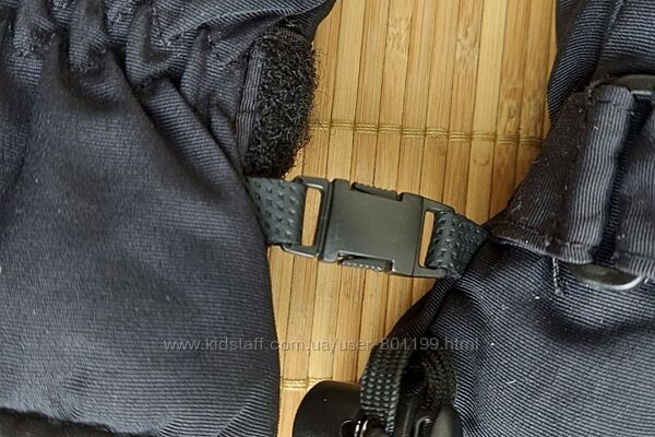 Есть застёжка для состёгивания перчаток друг с другом. В таком виде их можно пристегнуть к куртке, когда захотите передохнуть или перекусить - не потеряются).