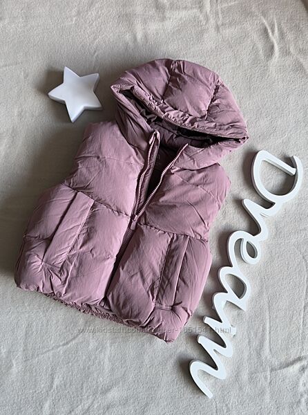 Жилетка водостійкі від ZARA бузкового кольору . Модель має комір-стійку, кишені ,блискавку та капюшон ( не знімається )РІСТ 89 ( спина 38 ПОГ 35 см )98 ( спина 40 ПОГ 37 см )107 ( спина 42 ПОГ 40 см )