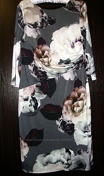 Доставка по всій Україні з оплатою доставки при отриманні Оплата на карту Приват банк. Повернення не передбачено платье принт цветы/ по талии драпировка/ ткань трикотаж-масло/с подкладкой пог 46 пот 40 поб 50 дл 102 рукав 47