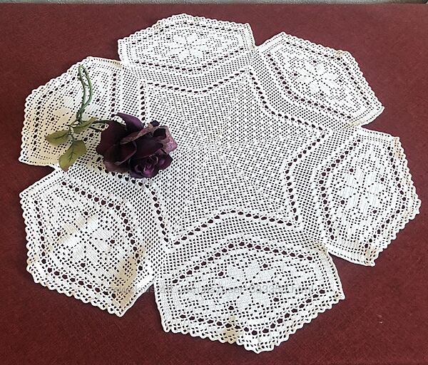 Подробное описание: Скатерть филейного кружева крючком снежинки -73 см