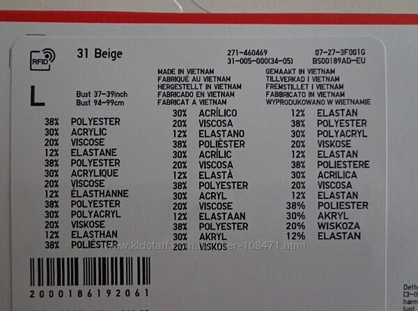 38% поліестер, 30% акрил, 20% віскоза, 12% еластан