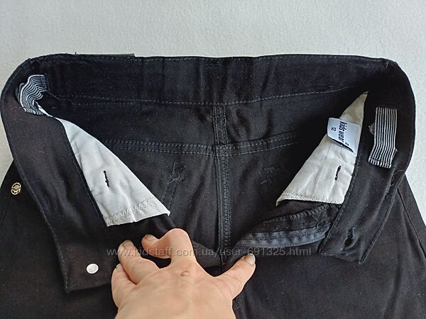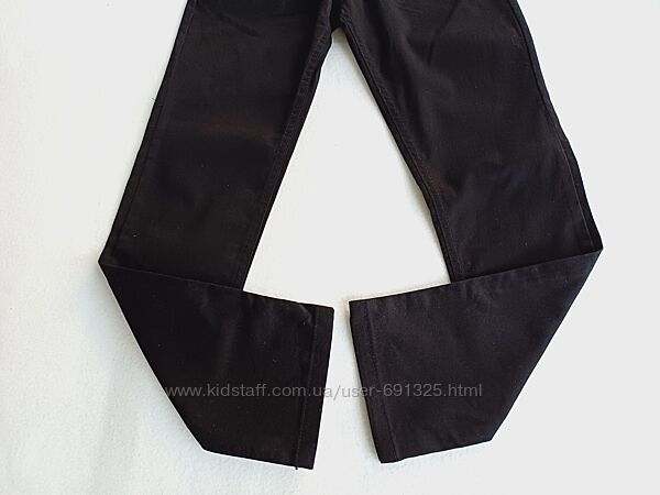 Пропоную чорні коттонові штани. Матеріал тонкий, 77% бавовна, 21% поліестр, 2% еластан, трохи тягнеться. Вживані акуратно в школу, стан дуже добрий.Розмір вказано на 12 років, маломірять. Довжина з бокового шва 85 см, з внутрішнього шва 63 см, ширина талії максимум 32 см, можна зменшити, ширина стегон 42-44 см. Ширина штанини зверху 23 см, внизу 15 см. Посадка спереду 22 см, ззаду 28 см.