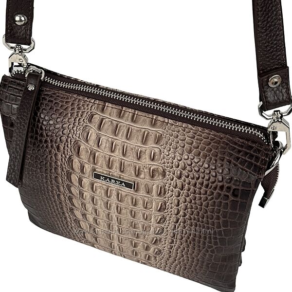 Сумка жіноча шкіряна Karya 3012-562 коричнева✔️ Матеріал: натуральна шкіра під рептилію.