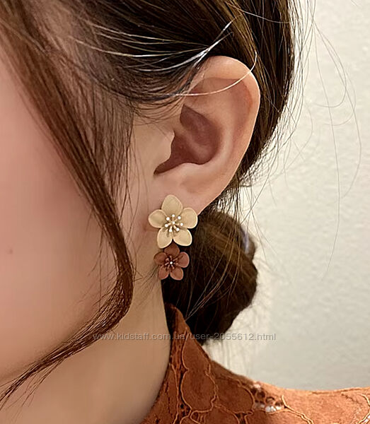 Сережки бежеві подвійні квіти.Довжина 2.7 см.