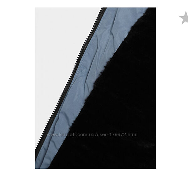 Куртка оснащена бічними кишенями на кнопках, додатковими трикотажними манжетами на рукавах, м´яким комірцем та фіксованим капюшоном.
