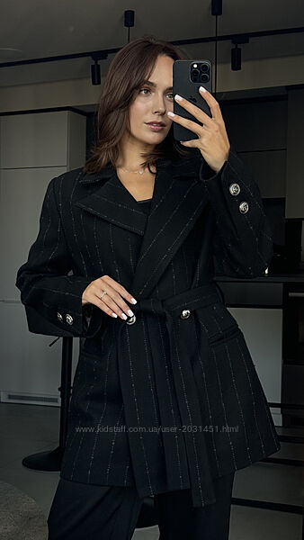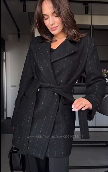 Подробное описание: Пальто - пиджак женское демисезонное шерстяное, оверсайз, в полоску черное