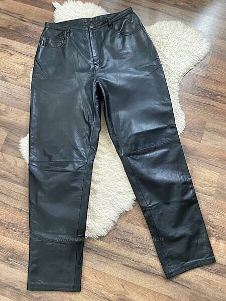 Чорні шкіряні штани прямого крою Milan.100% натуральна шкіра, подкладка 100% поліестер по всій довжині брюк (14 см не доходят до низу).
