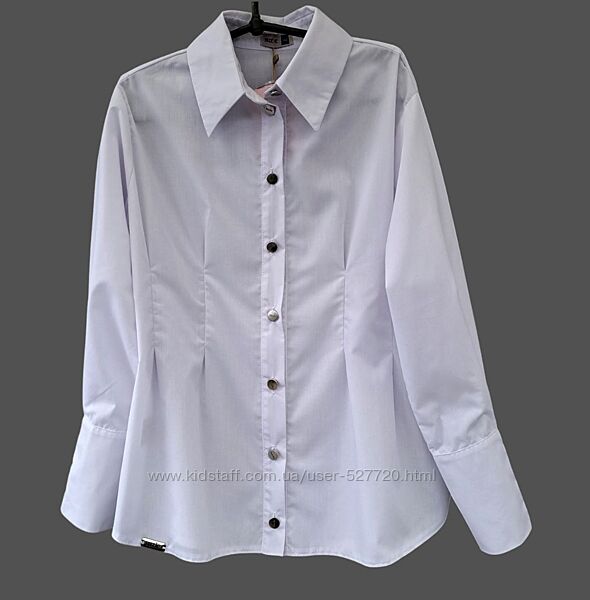 наличие по размерам уточняйте пожалуйстаБелая рубашка для девочек. Рубашечный воротник, спереди по всей длине застегивается на пуговицы. Плечевой шов немного приспущенный, низ рукава на широком манжете на пуговицах. В области талии спереди и на спинке присборено складками. Низ с закругленными разрезами.