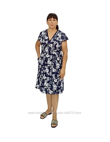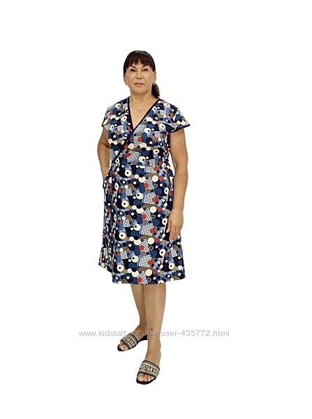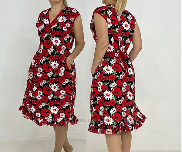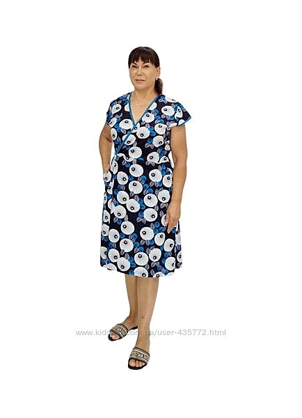 фото 2,3,4 Красивий жіночий халат на запах з тканини кулір-реактив, бавовна. Халат без рукава зі спущеним плечиком, низ виробу прикрашений воланчиком, з двома внутрішніми кишенями. Края обшиті бейкою. Модель повномірна. Поясок продівається в оброблену дірочку і затягується саме на вашу ширену талії, дуже красиво сідає на будь - яку фігуру. Натуральна дихаюча тканина забезпечить комфорт та зручність. Матеріал виробу - бавовна, пропускає повітря, вологу, виключає розмноження хворобливих бактерій.Вартість та розмір: 50,52,54,56,58,60,62 - - 385 грн