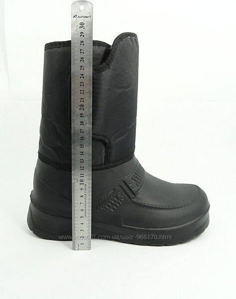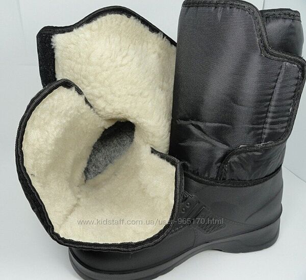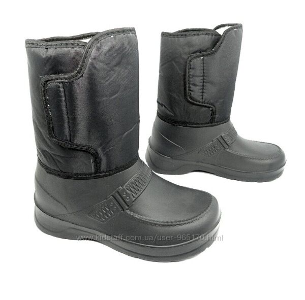Чоловічі зимові чоботи, виробник Україна утеплювач усередині чобота - штучне хутро. Взуття з матеріалу ЕВА забезпечує ногам сухість та комфорт, відрізняється підвищеною міцністю. Крім водонепроникності моделі цієї серії мають невелику вагу. Висота чобота 25 см.