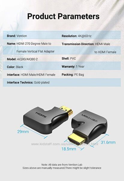 Подробное описание: Перехідник для комп´ютерів/ТВ приставок Vention HDMI Male to Female Ad