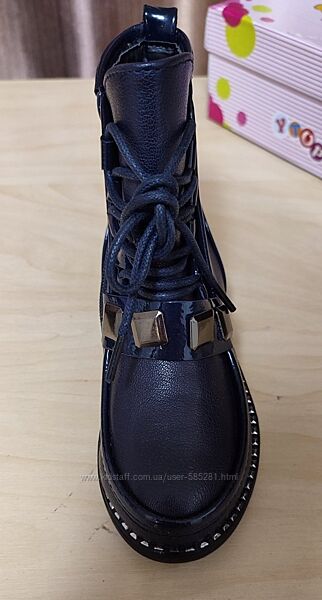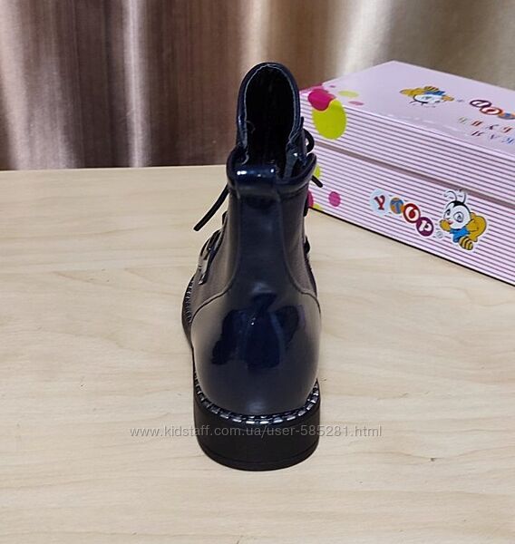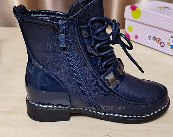демисезонные ботиночки для девочки, качественное исполнение, экокожа, легкие, комфортные, впереди шнуровка, сбоку застегиваются на молнию, подкладка с флисиком, очень украшают вставки лакированные и золотистые декоративные элементы, размеры 27-32-