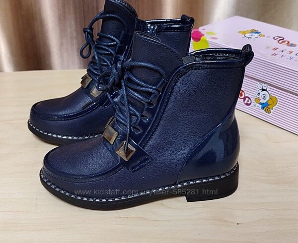 демісезонні черевики для дівчинки, якісне виконання, екошкіра, легкі, комфортні, попереду шнурівка, збоку застібаються на блискавку, підкладка з флісиком, дуже прикрашають вставки лаковані та золотисті декоративні елементи, розміри 27-32
