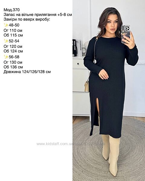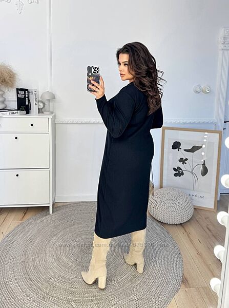 48-50, 52-54, 56-58 Сукня трикотажна рубчик, горловина кругла, розріз збоку