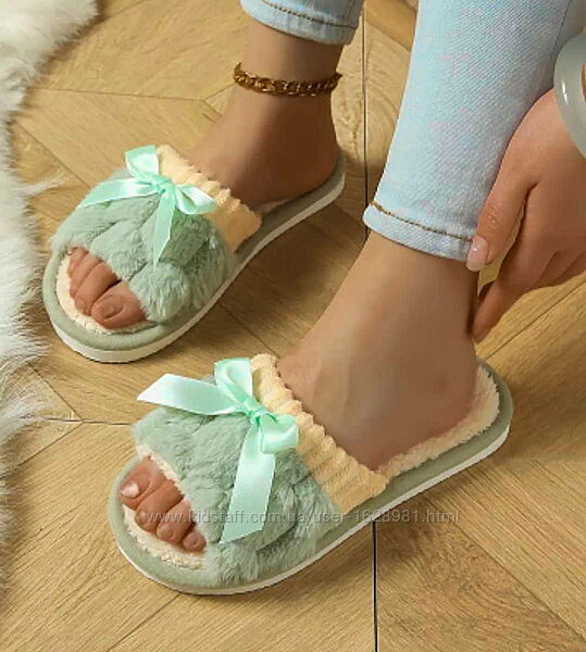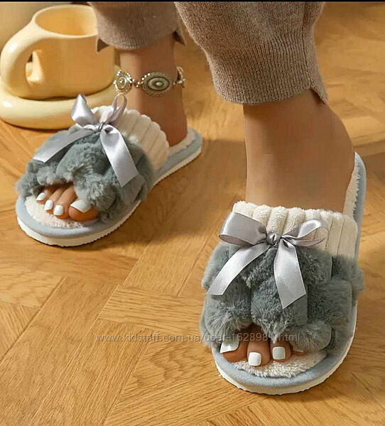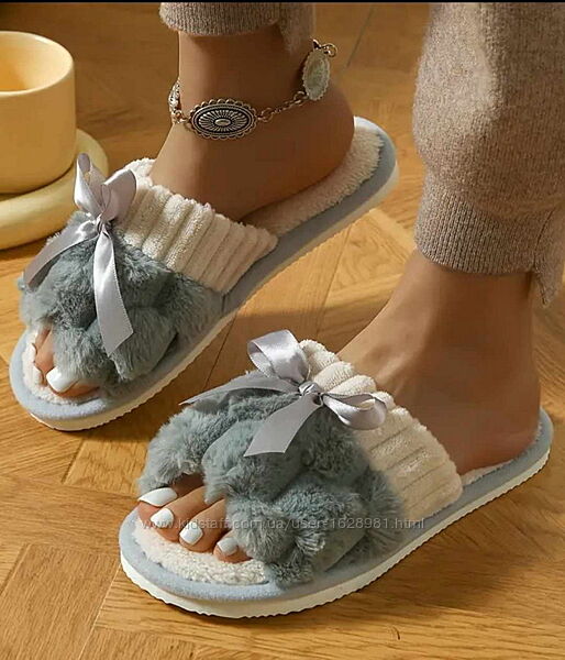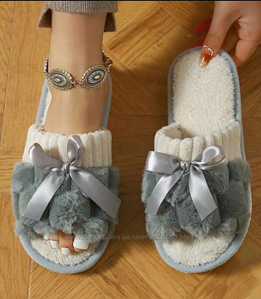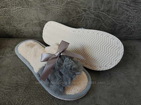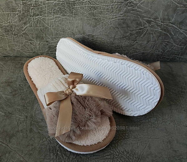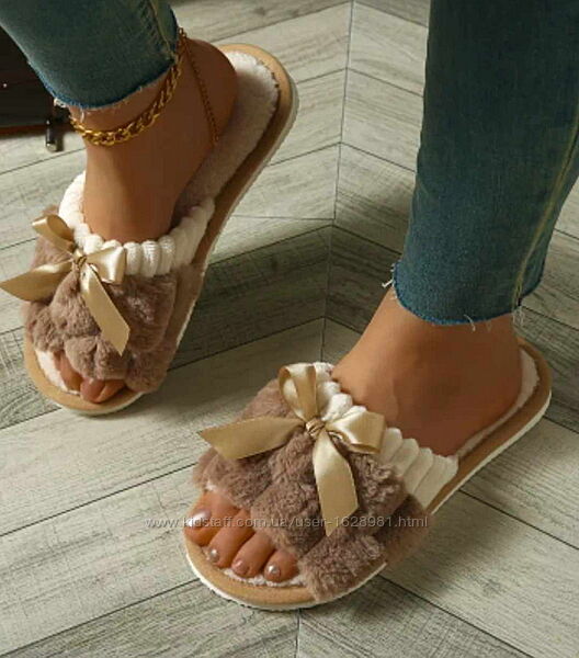 Подробное описание: Пухнасті капці з бантиками 37, 39 розмір 24, 25 см хутро домашние тапочки