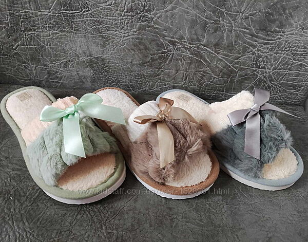 Милые уютные няшные тапочки на узкую и среднюю полноту искусственный мех, махровая стелька, атласные бантики прошиты хорошо держат форму велюровая стелька под пяткой проложен амортизирующий материал легко стираются в машинке, быстро сохнут стелька 25,7 см, но лучше носить на ножку 24-24,5 см 37,5 р (спереди и сзади стопы еще останется окантовочная тесьма) - бирка 38-39 серые, капучино стелька 27 см, но лучше носить на ножку 25 см 39 р (спереди и сзади стопы еще останется окантовочная тесьма) - бирка 40-41 мятные другие размеры под заказ выглядят дорого, носиться будут долго новые сопутствующие товары: пижамы, халаты, массажер для ног
