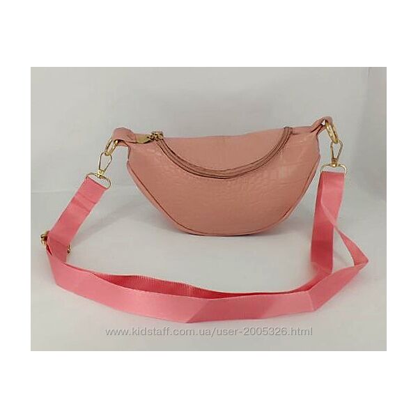 Сумка-бананка жіноча через плече A-Fation Бежево-рожева (24х13х8)Жіноча сумка-бананка з текстурної Еко-шкіри.