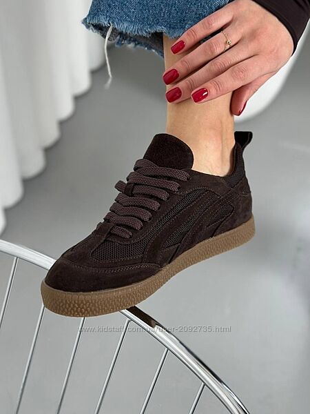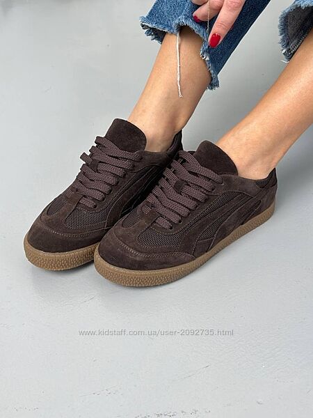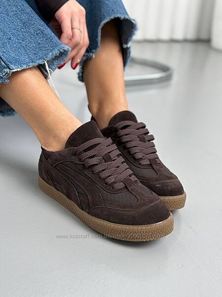 Подробное описание: Кеди жіночі замшеві шоколадного кольору із вставками сітки Артикул 4429