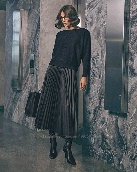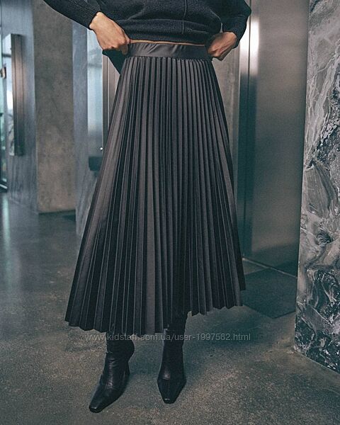 Подробное описание: Шкіряна спідниця плісе з високою талією чорна з екошкіри
